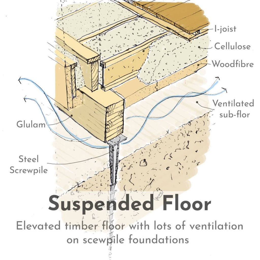 - Llama Croft by Janna & Seb Laan Lomas is possibly the best detailed building in the UK, possibly the world. Check the the Llama Croft Instagram and Grain Architecture Instagram for their details of their Suspended Floor, Larsen Truss Wall and Extended Eaves.
