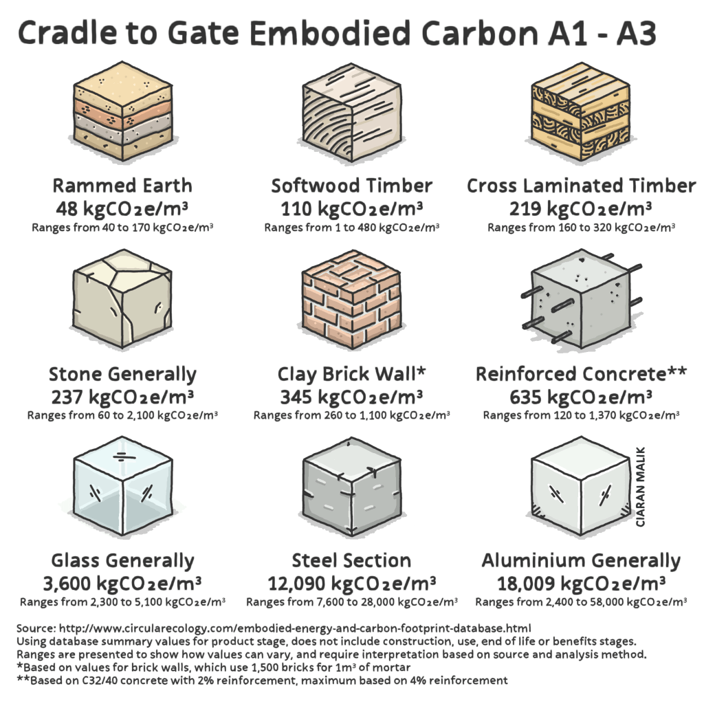 The data is for Northern Europe/Scandinavia but still provides a quick clear comparison of different materials.